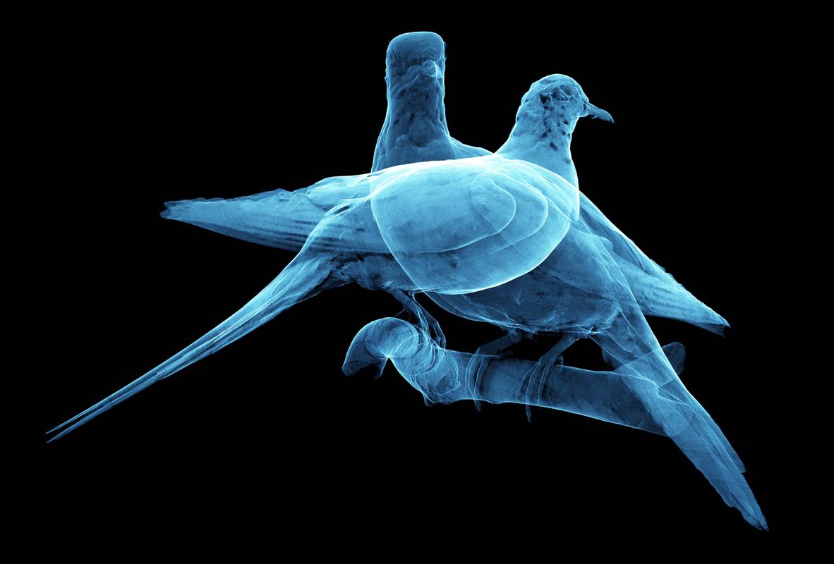 Aerial really developed out of the editing process. The slow action of exploring the point clouds and generating the renders from the scans revealed unexpected qualities unique to this particular collection of birds. There seems to be dynamism to their forms, captured in freeze-frame by skillful taxidermy, but transformed again into luminous bodies which appear to dance around each other in combinations that can only exist within this virtual diorama.