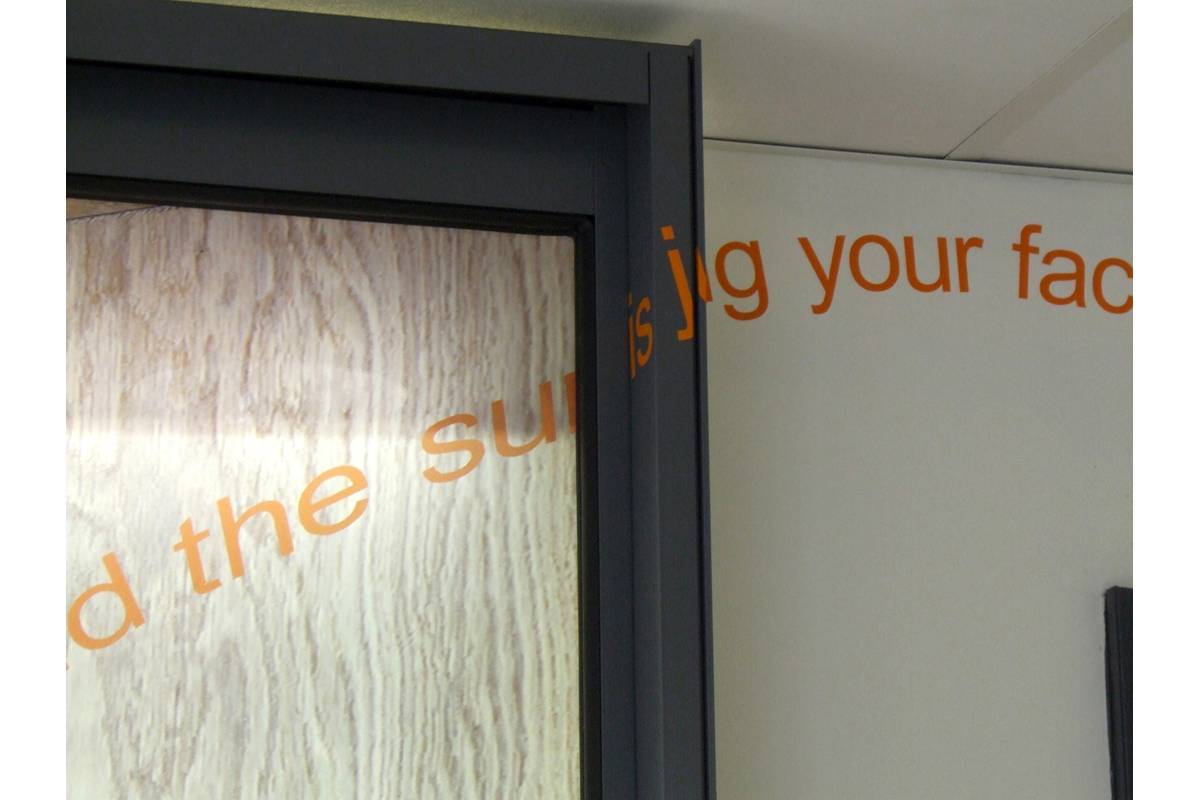 A written description of the actual forest forms a ribbon of Chinese Whispers to contrast with students’ perception of the structure of school life. This begins in the image, then out across the college walls and down the atrium. By the time it reaches the main entrance it welcomes visitors with a meaning all of its own.